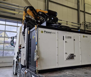 Die vollelektrische PowerBox eignet sich perfekt für emmissionsfreie Kranarbeiten.
